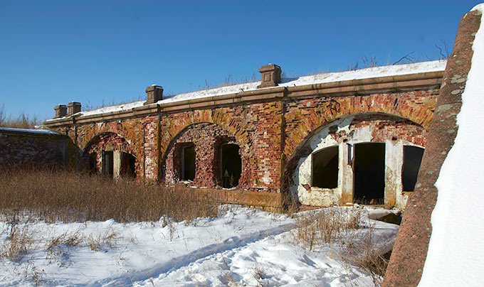 After the war, forts were finally disarmed and deserted or used as warehouses. In 1960th the state program of gathering a scrap metal broken out and forts of Kronshtadt has suffered a huge and irreplaceable losses.